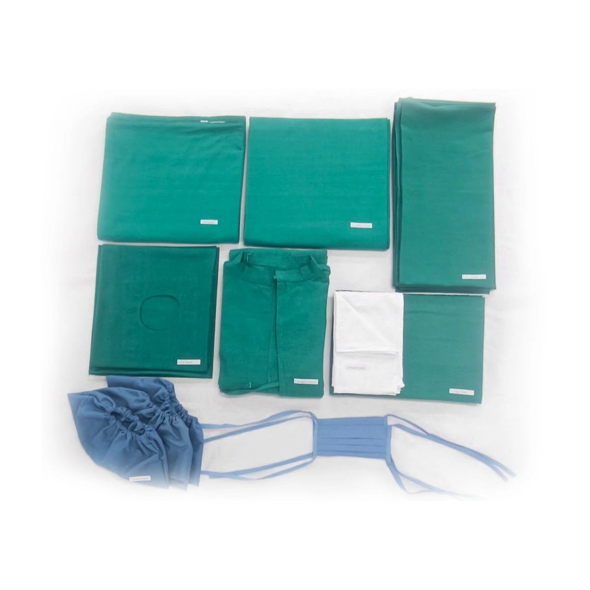 Each kit typically contains essentials such as sterile gowns, gloves, caps, masks, drapes, shoe covers, and other disposable surgical accessories. Component list can be customized on order.